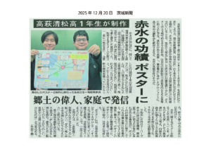 県立『高萩清松高』(高萩市赤浜)の1年生3人は、地元赤浜出身の「長久保赤水」に着眼。事前の認知度調査を実施し、企画・構成、ポスターデザインなど、全ての工程を3人で考え実現しました。